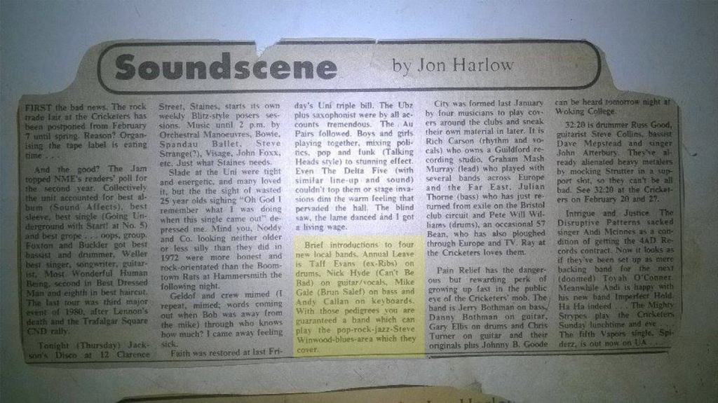 (c’81) Taff Evans (drums), Nick Hyde (guitar / vocals), Mike Gale (bass) and Andy Callan (keyboard).