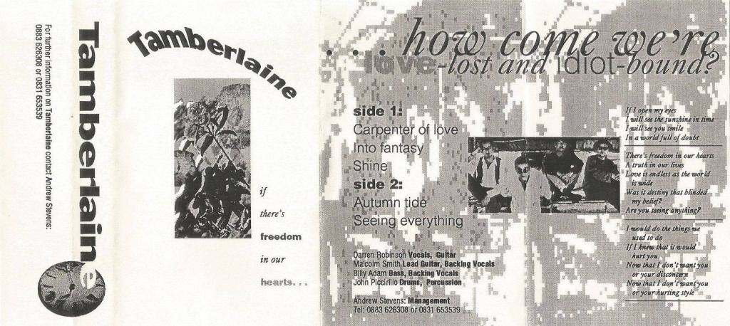 The band, who had all been members of Sweetlife, were initially managed by Andrew Stevens, then Coulsdon based Mirage Music Artist Management. In mid to late ’94 the band released of the 5-track “Of There’s Freedom In Our Hearts…” demo cassette. On 6 August ’94 1994, Tamberlaine supported Vox Pop at The Cricketers, Westfield.