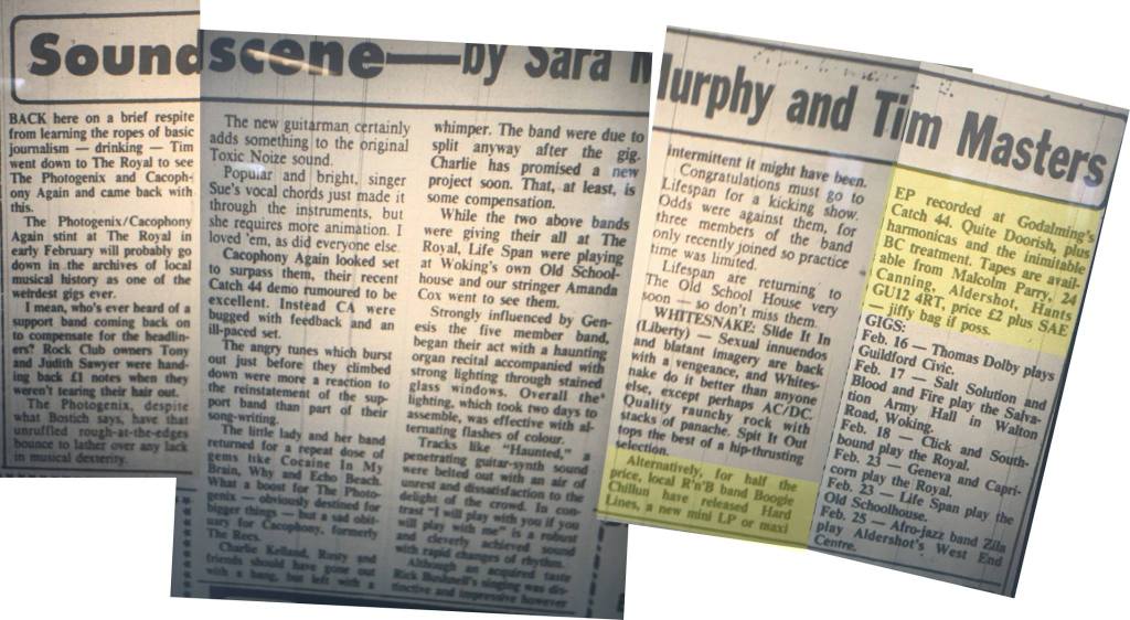 This Aldershot based R&B band, who were sometimes monica’d The Boogie Chillen Band, recorded the ‘Hard Lines’ mini LP / maxi EP at Catch 44 Studios, Godalming and released it in February ’84. As well as playing local pubs, that year the band supported Alexis Korner, played the Surrey-Free Arts Festival, South-East Essex Art Festival and GLC Thames Day Splash.