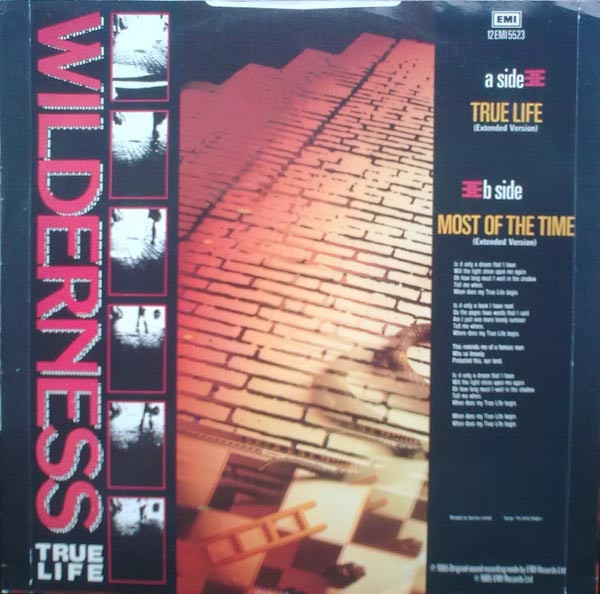 On 21 April ’84 the band appeared with Last Chance to Dance and Zero Zero at the Easter Disco, held at the Community Centre, Frimley. The single was then re-released by EMI (EMI15494) in September that same year. The band later renamed as Wilderness and released a second single, ‘True Life’ (EMI5523) on 7″ and 12″ in ’85.