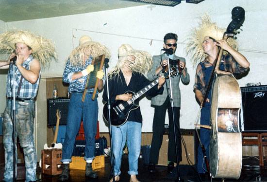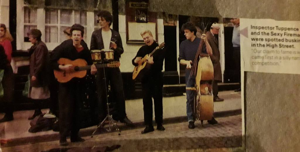There was a healthy rockabilly / psychobilly scene in Mid-eighties Surrey, and this skiffle outfit were often seen busking in Guildford. Inspector Tuppence and The Sexy Fireman were the only band allowed to busk on Guildford High Street at the time, and were also known as just Inspector Tuppence from ’91 onward, or just IT as The Sexy Fireman was ‘too long winded’.