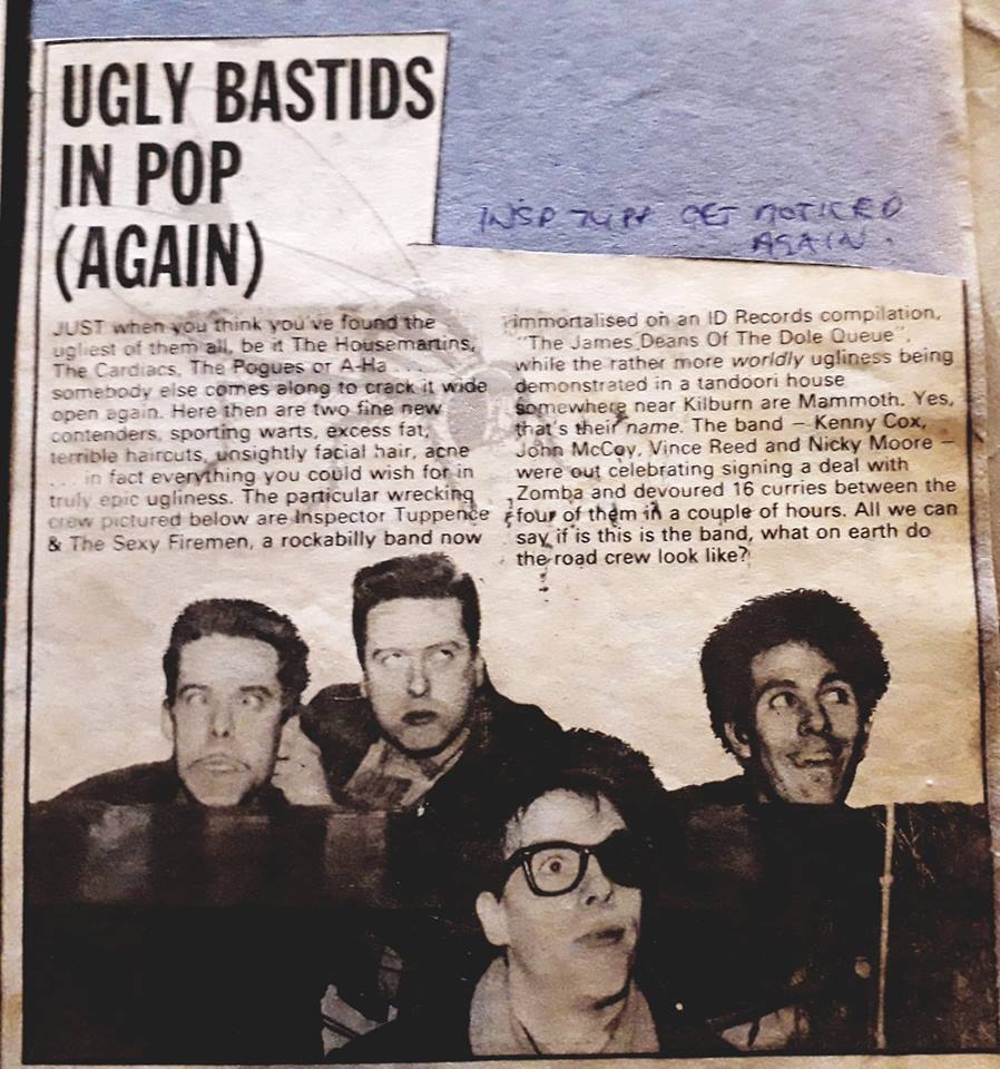 Spike had been in The Millhouse Boys, joining The Rapids in ’83 and ThunderbirdHead in ’87 all while also playing rockablly in The Hog Valley Stompers, cowpunk with Catfish and busking with skifflers Inspector Tuppence. He also joined psychobilly band Frenzy in ’89. The most successful was Inspector Tuppence and he dedicated his time to the Sexy Firemen. The band started playing the clubs on the London circuit and venues all across the UK.