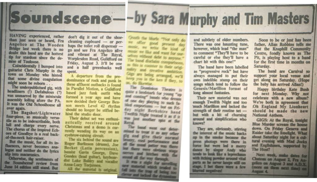 This Guildford based jazz funk combo, who had a friendly rivalry with Flow Motion, first appeared on the scene around Christmas ’83. In mid ’84 they released a demo of original material.