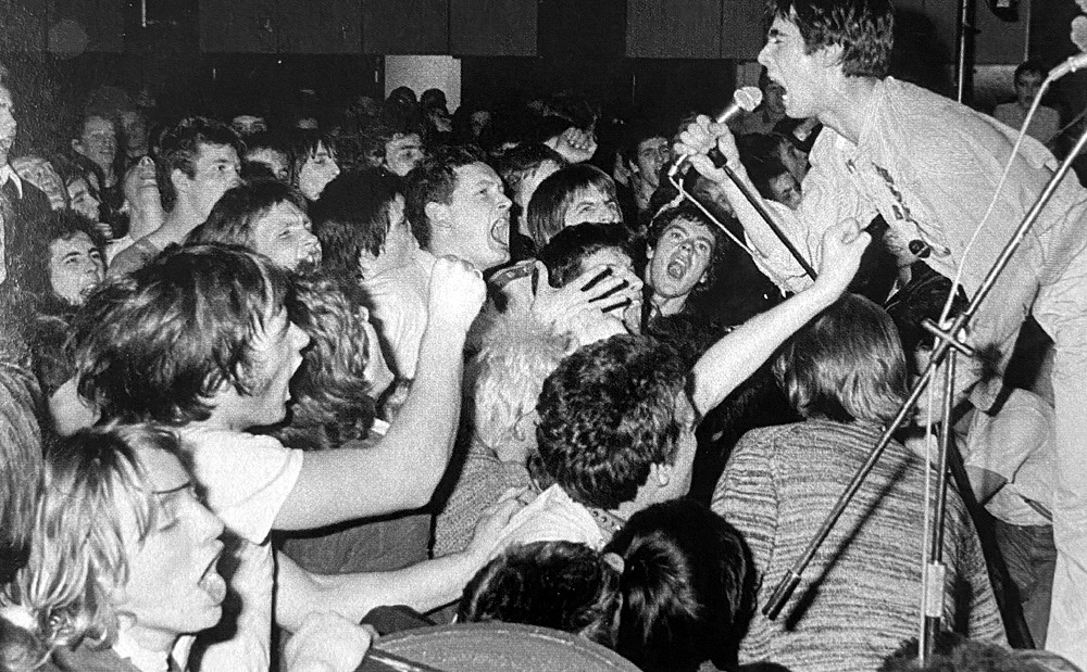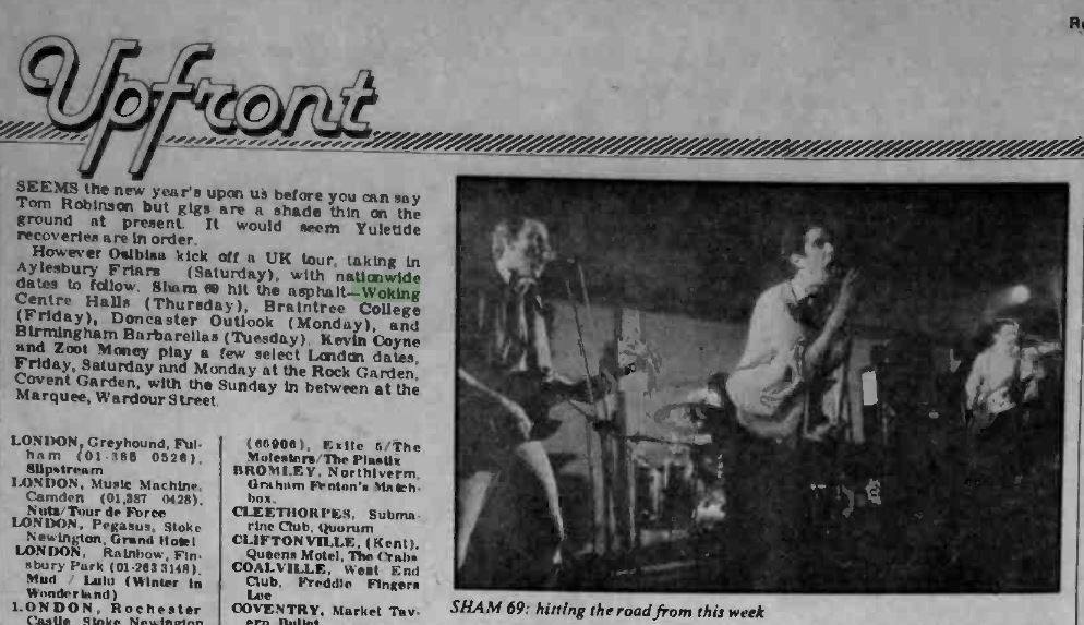 Two weeks later, with tickets retailing for a quid, Sham 69 were back; with Master Switch, Menace and local band Crisis – who replaced Speedometers in support on 19 Jan ’78. Crisis’ vocalist Frazer Towman came on and rushed about the stage wearing a mask. And of course not forgetting Tubeway Army’s appearance in May that same year. The Stranglers and Sham 69 gigs both featured a bit of argy-bargy, in fact a front door was ripped off before the 19 January Sham 69 gig even started.