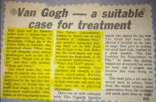 In ’87, Ob-Jay-Da won a talent competition, judged by David Jason and others, with their performance of “Amoureuse”, that was held at the Halls. The 4 September ’88 pretty much saw the last live band event at Centre Halls. ABC Music’s Showcase ’88 featured 8 bands, including 5 local groups: The Button Factory, Napalm Groove Squad, The 68 Floods, Van Gogh and the Earlobes, and Steel Bill and the Buffalos – who headlined and won the showcase; as well as the non-locals City Limits, Colour Noise, and Havana Affair. It was rumored that Sammy Rats Big Big Blues Band would be on the bill for Showcase ’88; but it wasn’t to be. Van Gogh and the Earlobes, supported by Napalm Grove Squad, also played at the venue for a Brooklands College party in ’87/’88.