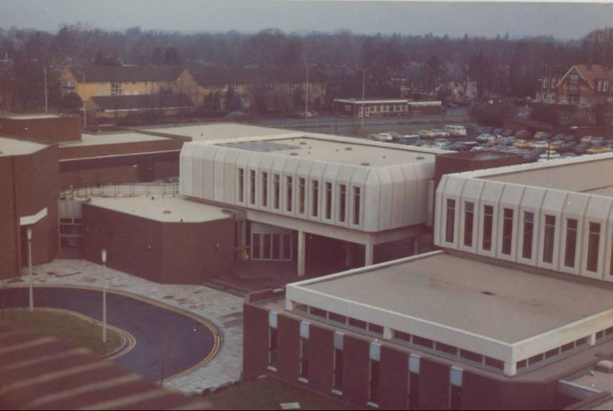 Construction started on Centre Halls, Woking in 1973, opening in the mid ’75. It was demolished in the late 80’s, along with Centre Pool and Woking Library, to make room for The Peacocks shopping centre. The Centre Halls included the Rhoda McGrew Theatre, library and swimming pool along with the “Concert” Hall.