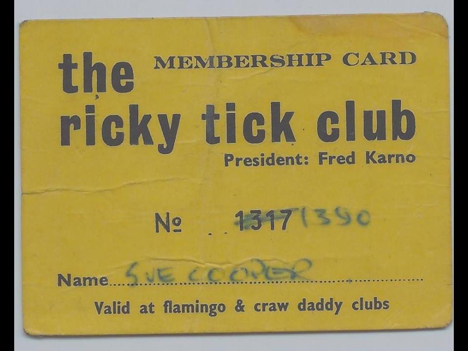 After the first few gigs in Guildford the Ricky Tick organizers noticed posters for Hogsnort Rupert about town, featuring the strong image of a singing/screaming face, and on discovering the creator reached out. Bob McGarth of Hogsnort Rupert had created the posters while at Farnham Art College and he agreed to design and produced posters for the Ricky Tick, using the image that became the Ricky Tick icon / logo, but eventually volumes grew, and he created a method for Mansfield and Hayward to do it themselves.
