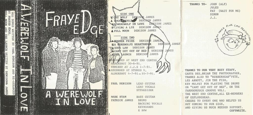 On 30 June 1991 the three members of Frayed Edge entered West End Centre, Aldershot and recorded four of the tracks for the “A Werewolf In Love” cassette album, all four need remixing at J.J.S. The other six tracks were laid down at Studio V, Aldershot in early July ’91.
