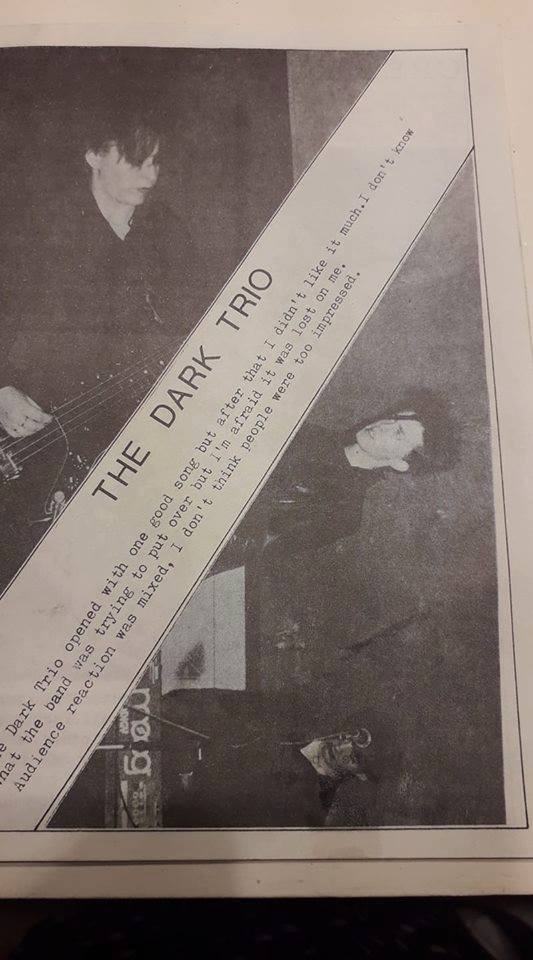 The band joined LongPig, La Maison Du Chants, Freedom Dance and Funtime for Phillip at the University of Surrey’s New Wave Society’s event on 7 May ’83 in the Great Hall, Surrey University, Guildford. Their performance received a brief review in The Werewolf fanzine. The Dark Trio unfortunately lasted but a few weeks.