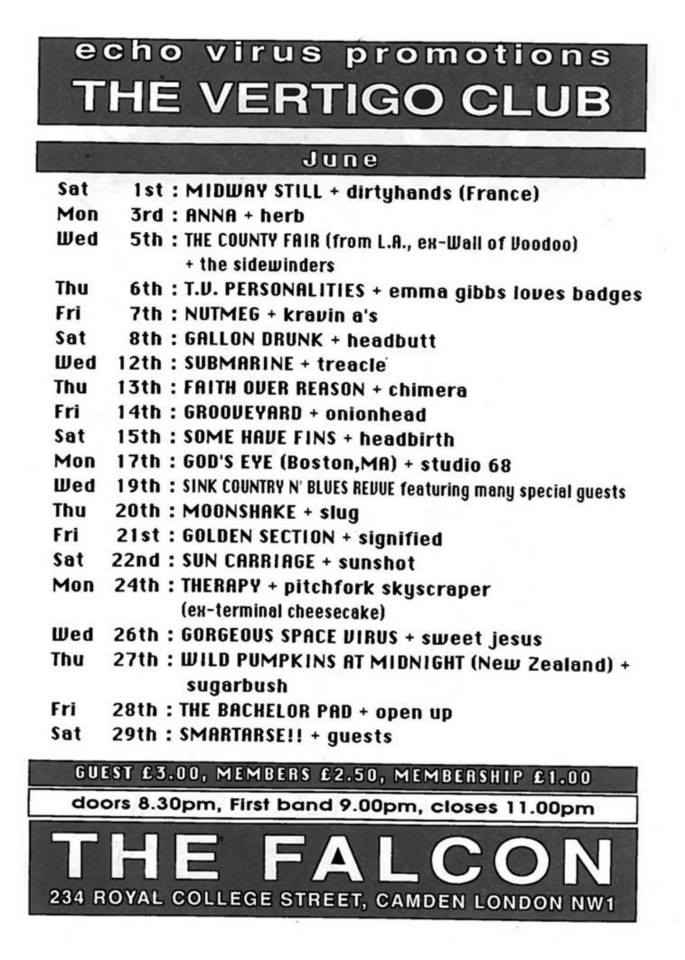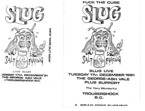 Leadmill, Sheffield: Mega City Four w/ Equations, Midway Still, and Dr Phibes and the House of Wax George, Ash Vale: Slug w/ Trousershock B.C.
