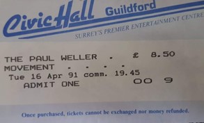 What follows is a list of gigs, with images of tickets, adverts and flyers where possible, either at GU postcode venues or featuring bands, listed in bold, we like to claim are part of the Woking/GU Soundscene in 1991: