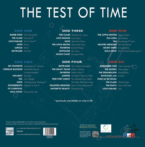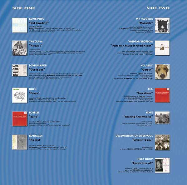 Two more compilation inclusions appeared over the years including: The Eleanor Linwood compiled “Out Of The Blue” which included the bands “Virginia Court” and a bio in a 16 page self-styled ‘mini-booklet’ that only came with some of the cassettes [Ed – again any picture of that would be great]. The newest compilation, a six-sided A Turntable Friend retrospective, was released in 2017 in Germany and titled “The Test of Time”, as CD [TURN50CD] and LP [TURN50LP] carrying “Perfection Found In Good Health”.