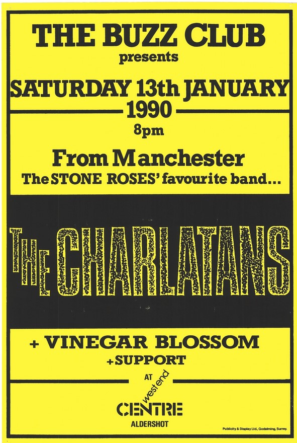 But, before that The Vinegar Blossom’s second gig saw them supporting The Charlatans at The Buzz Club at the West End Centre, Aldershot. This was also the night that the band had asked Danny Hagan to manage them and The Charlatans asked Vinegar Blossom if they’d support them on a few dates later in the year. On the 29 May the band played the first of three dates with The Charlatans at Portsmouth Polytechnic, the next night they were at the Bierkeller, Bristol and on 1 June they supported at the Nelson Mandela Building, on the University of Sheffield campus. This was also the year they were supposed to support Flowered Up, with Here Comes Jordan, at The Buzz Club on 15 June. Flowered Up cancelled and Eusebio stepped in to headline.
