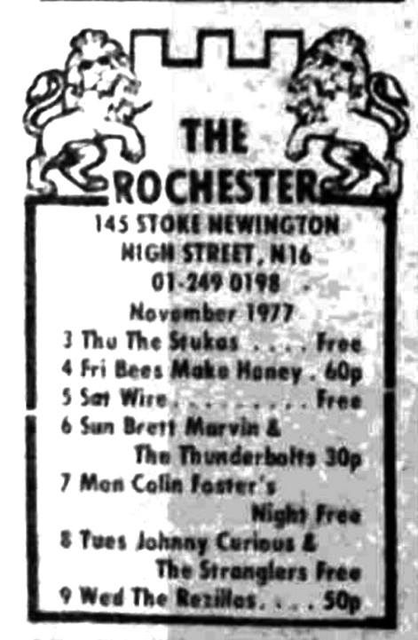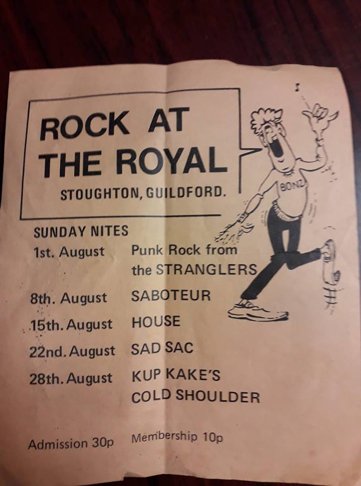 In early ’74 they recorded “I Know It” for a demo, that included “Charlie Boy”, “Country Chaser (instrumental)”, “White Wedding” and “Make You Mine”. They played their first gig as The Stranglers at The Star, Guildford on 21 December 1974. The Quarry Street hostelry now carries a blue PRS for Music Heritage Award plaque. The band supported 50’s retro group Fumble on 28 Jan ’75 at the Technical College, Farnborough, playing a cover of Johnny B Goode among other covers. This was arranged by Guildford based teen impresarios, Mike and Richard Ashworth of Wax Promotions. The band continued to build a following within the mid-70s pub rock scene; including a short-lived lunchtime residency at The Royal, Guildford. They also played alternate Wednesdays at the North Camp Hotel’s Gaiety Bar.