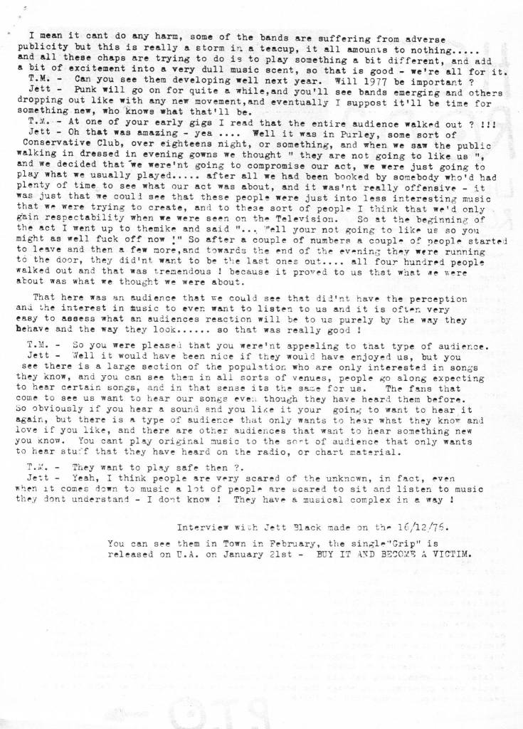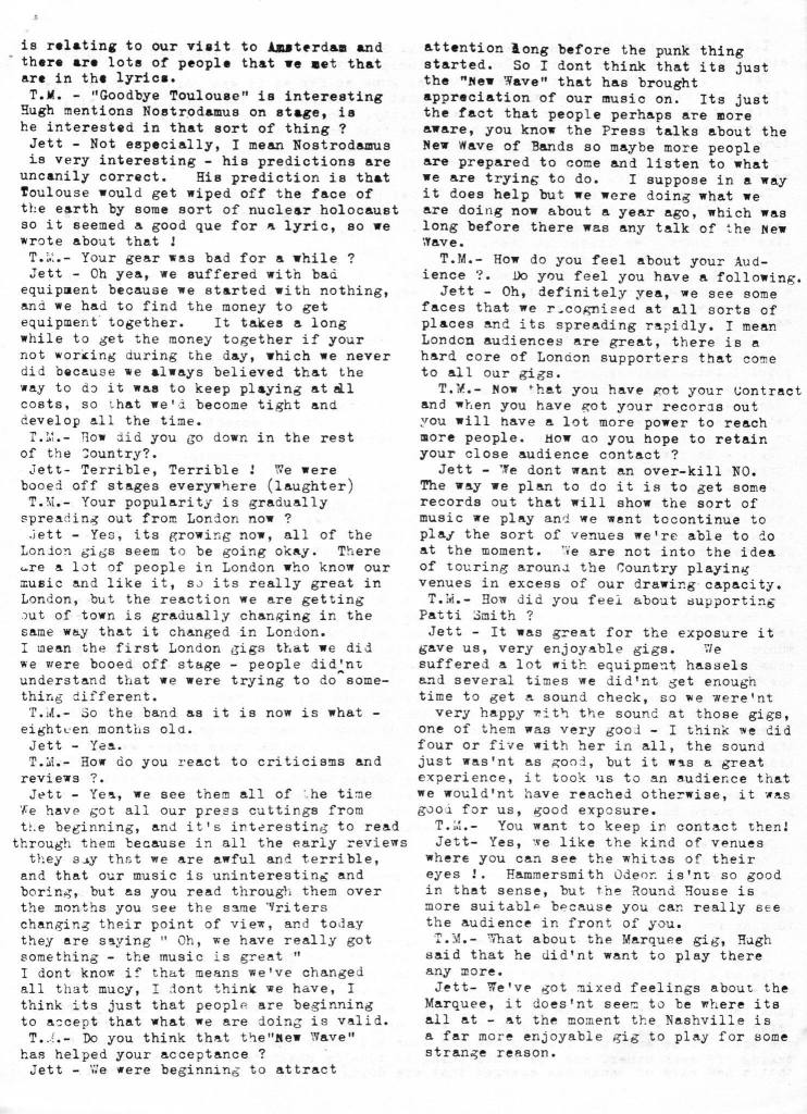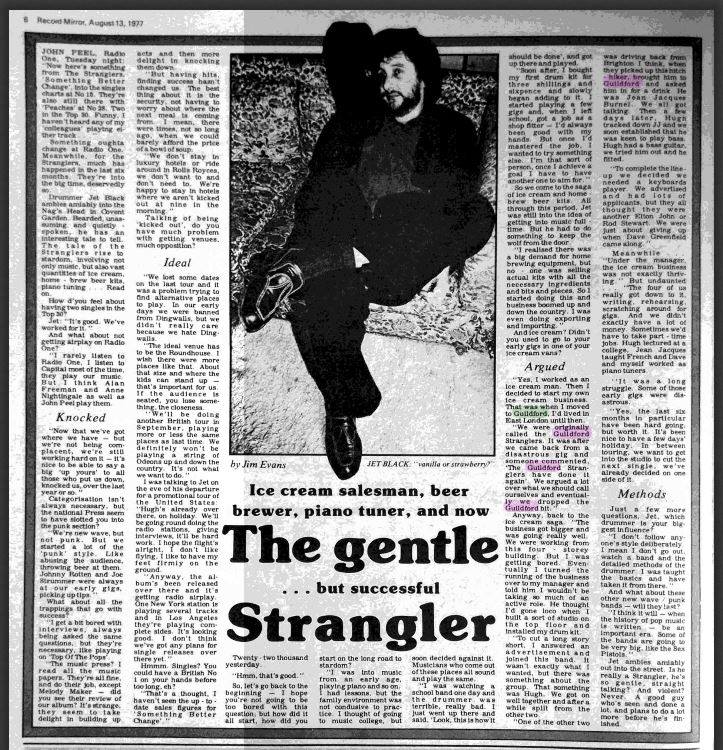 In June 1980 they were all jailed for inciting a university riot in Nice. On 2 March ’81 the band hit the Winter Gardens, Cleethorpes with Modern Eon in support, who also opened at the Pavilion, West Runton three days later, on 5 March ’81. French new wave band Taxi Girl, whose “Seppuku” LP was, produced by Burnel and featured percussion from Black, toured the UK in ’81, opening for The Stranglers on their La Folie tour; this included the Lyceum, Sheffield on 28 November ’81. “La folie” was the band’s sixth studio album, and was released on 9 November ’81, through the EMI record label Liberty. The Stranglers, supported by Boys in Darkness, played the Student Union at Sheffield City Polytechnic on 21 January ’82 and signed to Epic Records later that year. Jet Black was also regularly seen at The Kings Head, Guildford, along with The Jam‘s Bruce Foxton for House gigs.