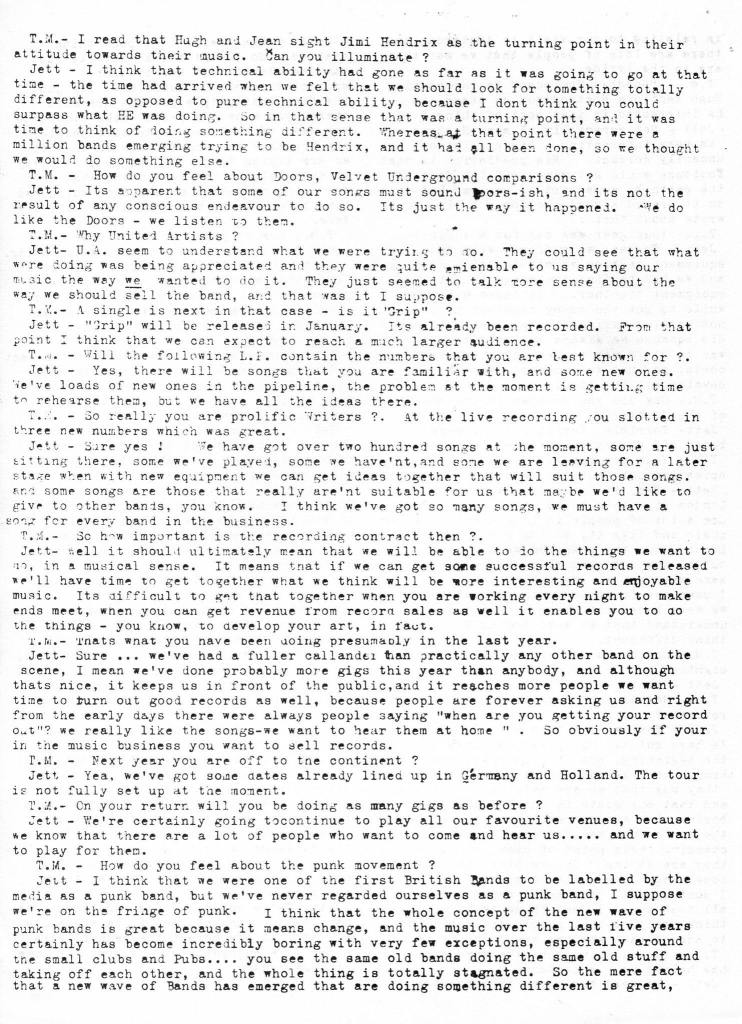 On the bands ‘return’ to Guildford for their 1978 appearance at the University of Surrey for the BBC TV programme Rock Goes to College, the group walked off stage because an agreement to make tickets available to non-university students had not been honoured. “Social Secs” was written after that BBC “Rock goes to College” debacle.