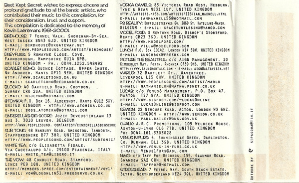 “Kitty Jr” appeared on Bluefire Records’ “Snakebite City Nine” [BLU15] CD released in ’99. In 2000 they played the The Maltings, Farnham with Vex Red and Me Against It All in aid of Reef Protection. That same year “Kitty Jr” also appeared as track two on the A-side of Italian cassette compilation “Beware Of The Ricochet Vol.3” [LIE 018] on the Best Kept Secret label.