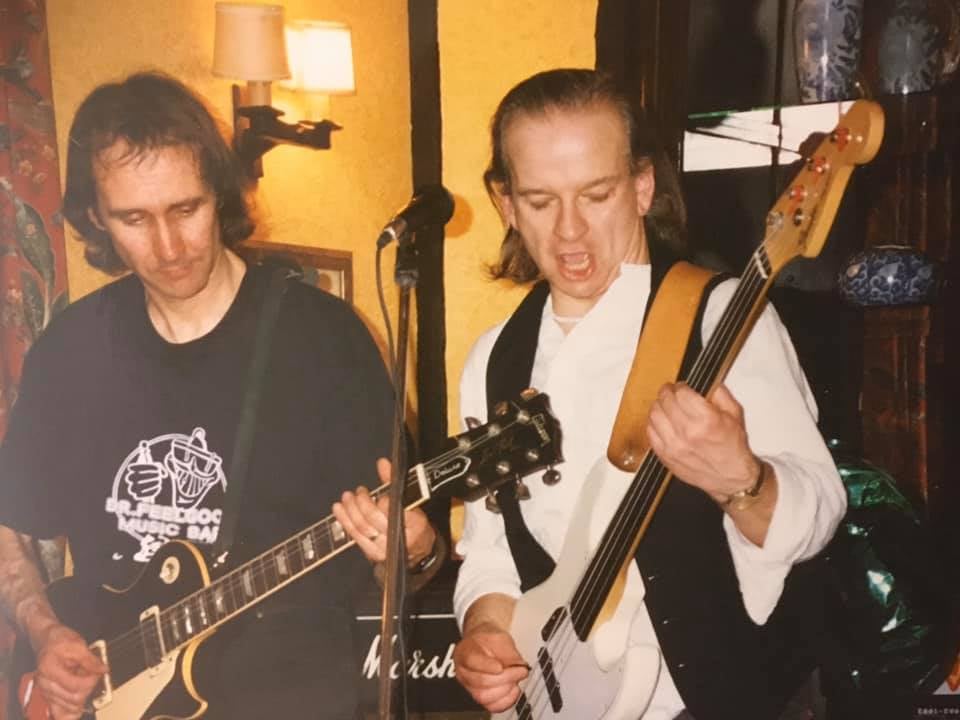 By 1990 Barry Witham was on bass and in the mid-90’s Mick Bryant/Hogsden, front-man with Bloodhound, was the keyboard player. This ’89/’90 period also saw Nick Whitehouse and Nick Gibson (sax) – who’d been in the brass section of Bloodhound – with the band briefly. There were a few gigs in ’90/’91 that saw Ken Nornton on bass at the same time as Pete Weller.