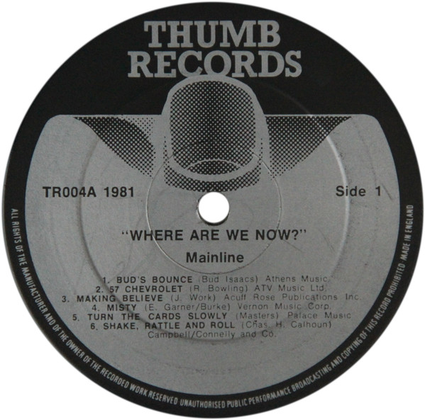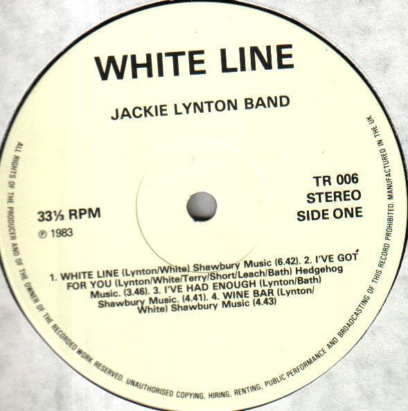 Reading based Mainline’s ‘Where We Are Now’ (TR-004) came out in ’81, apparently selling 500 copies in New South Wales, Australia and making it a local No.1. Interestingly we can find no record of a TR-005. In ’83, two years after Mainline’s LP, Thumb put out the Jackie Lynton Band’s ‘White Line’ (TR-006), which they had recorded at Jacob Studios.
