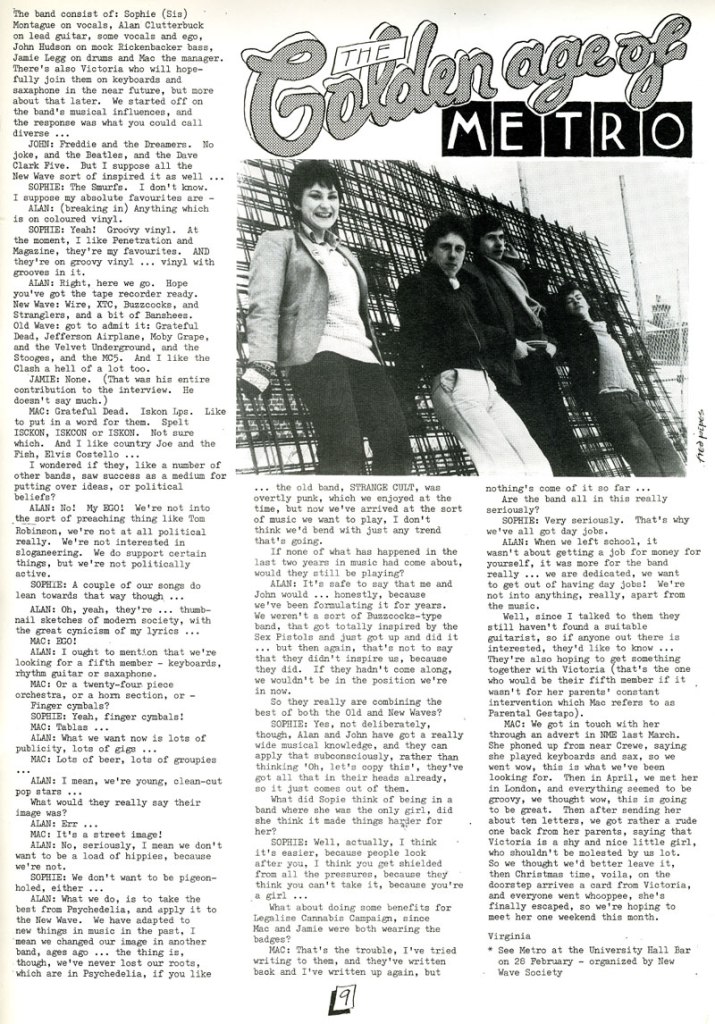 Formed from the remnants of punk band Strange Cult they were managed by a guy called Mac ?, and were once described as playing psychedelic new wave – The Golden Age of Metro really combined old and new.
