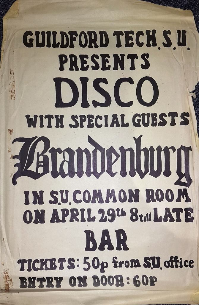 On 29 November ’75, Thin Lizzy graced the college with a performance. The Student Union Common Room hosted a disco on 29 April, in what is believed to be 1976, at which Brandenburg provided an injection of live music. Local band, The Vapors, also made an appearance there on 7 May ’78.