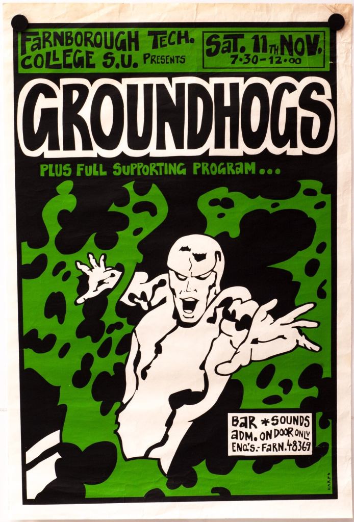 Farnborough Tech regulars Fruupp performed in January ’74, supported by Brewers Droop. Home rocked it out on 12 January ’74; returning in February with Capability Brown. That was not on 9 February ’74 however as Principal Edwards and Highway were there. Two months later it was Groundhogs, on 5 April ’74, with Starry Eyed and Laughing warming up the crowd. The following month, on 4 May, Half Human Band opened for The Troggs on what was to be a memorable night for many, including students Nick Tarn, the SU treasurer, and the now journalist Sebastian O’Kelly. Members of the Hells Angels Motorcycle Club were aiming some abuse at The Troggs and spraying drink at, the lead singer, Reg Presley. Presley, after telling them to stop and if they wanted trouble to see them after, launched himself into the club members from the stage, ending the show. In the subsequent melee, guitarist Richard Moore was stabbed and rushed to hospital for emergency surgery for the wound to his lung, barely surviving; another bottled and Presley received a broken nose for his troubles. Calmer times ensued on 30 November, which witnessed Greenslade who returned in December ’74 with local band Asylum in support. Barclay James Harvest and Marvelous Kid also appeared in December that year.