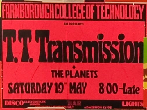 Ramrod, a spin-off of SALT and the Rory Gallagher band, with Stevie Smith on vocals also performed there in ’78. On 19 May ’79, T. T. Transmission headlined and were supported by The Planets (who would soon rename to Lopez & The Waveriders) – a purposeful juxtaposition where the Waveriders well performed opening was incongruous to the audience’s prog-rock leanings. In addition, at some point that year Judie Tzuke was on stage as well as local band The Desotos, although not on the same night. Camel had been booked to play at Farnborough Tech earlier in ’79, but had cancelled at the very last minute. Having been burnt once, the college’s Social Secretary did not book the band again.
