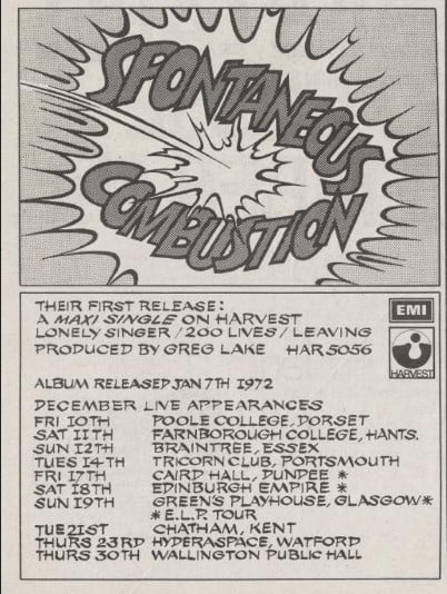 Anyone remember Hookfoot or Ange? They were at Farnborough Tech on 14 January ’73. A few days later, on 27 January, it was Snake Eye’s turn. There were a couple of, as yet, un-dated classic gigs in February ’73: The first saw Brinsley Schwarz and Ducks Deluxe on stage, the second had Savoy Brown supported by Saturnalia- who’s “Magical Love” LP was one of the first 3-D picture discs -, and Lloyd Watson. As best we can tell Snake Eye returned on 17 February ’73 to support Vinegar Joe, along with Bloss. Another as yet undated gig that dropped in April ’73 had Snow Leopard supporting Man. French progressive rock band Ange were back on 13 April ’73, this time sporting Wizzard. Good Habit and Lancer rolled onto campus in September ’73 and in October Ange headlined, supported by Camel. Jack the Lad filled the 13 October assisted by Byzantium and at some point, in November, Roger Ruskin Speare opened for Fumble. Mid-November ’73, on 10 November to be exact, Fruupp took the whole evening. They were followed two weeks later, on 24 November ’73, by Gong and Kevin Coyne; who may have both returned in December ’73. Wrapping up ’73 was Manfred Manns Earthband on 19 December, with Lancer.