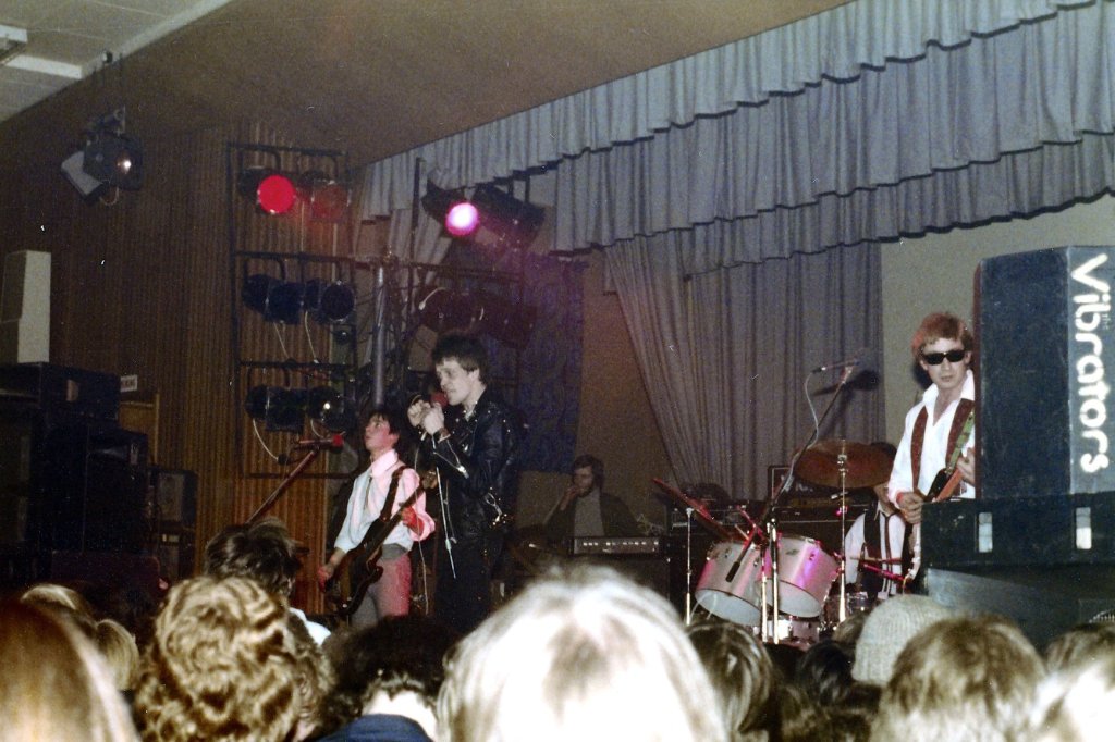 Flight 59 opened for String Driven Thing on 18 January ’75. Ten days after, on 28 January ’75, Mike & Richard Ashworth, as Wax Promotions, put on The Guildford Stranglers at Farnborough Tech; where they played several standards, including Johnny B Goode while supporting 50’s retro group Fumble. A matter of days later, on 1 February ’75, The Stranglers were back supporting, the returning, Fruupp. The next week it was Gordon Giltrap upon the stage and Asylum supported Budgie on 20 February ’75. March ’75 welcome Blackfoot Sue. That same month, Stackridge returned to Farnborough College of Technology, on 22 March ’75, supported by Shepstone & Dibbens. Deaf School and The Fabulous Poodles also appeared in the 70’s, and we know that Strife supported by Palantir, and Rocky Sharpe and the Replays supported by Salt all played the venue some time in February ’76. The next month, on a date yet to be confirmed, Nutz supported Starry Eyed and Laughing. The Automatics supported The Vibrators at Farnborough Tech on 18 Feb ’78, seven days later The Vibrators would be performing “Automatic Lover” on Top of the Pops. The month after, on 11 March, The Enid were on stage.
