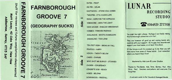 This Church Crookham based 4 piece, recorded the “Snide Tunes” 3-track demo at Monster Studios, Leatherhead, with Sid Stovold providing some additional percussion, with Chris Stevens producing. In ’97 the third track from the “Snide Tunes” demo, titled “Too Long”, appeared on Farnborough Groove Vol.7 (Geography Sucks).