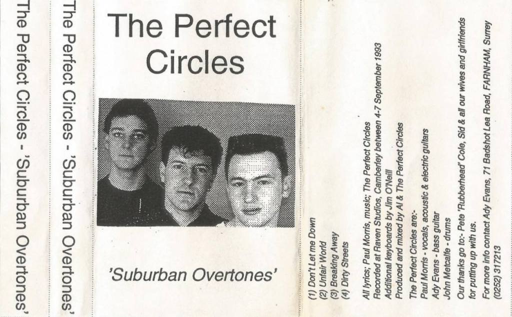 Metcalfe and Evans had both been in Blue Velvet before The Perfect Circles. This Farnham 3-piece released the demo cassette “Suburban Overtones” late in ’93. They recorded the 4 tracks at Raven Studios, Camberley over the 4-7 September with additional help from Jon O’Neill (keyboards).