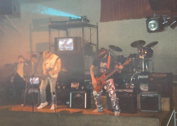 It was a year after their formation before their first gig at All Saints Church Hall, New Haw, on 3 Nov ’90, supporting Backlash and Alternative Law. On 3 May ’91 the band were at the West End Centre, Aldershot supporting Warp Spasm along with Severence, and Asteroth. By June ’91 Durban had joined the band in time for “Madhouse”, their second demo released later in ’91. In the Spring of ’92 the band played at Tormead School’s 6th Form Ball, shortly after which, on 24 April ’92, they headlined a gig at The Cricketers, Westfield and were supported by Faced Out.