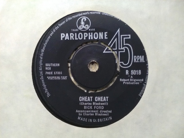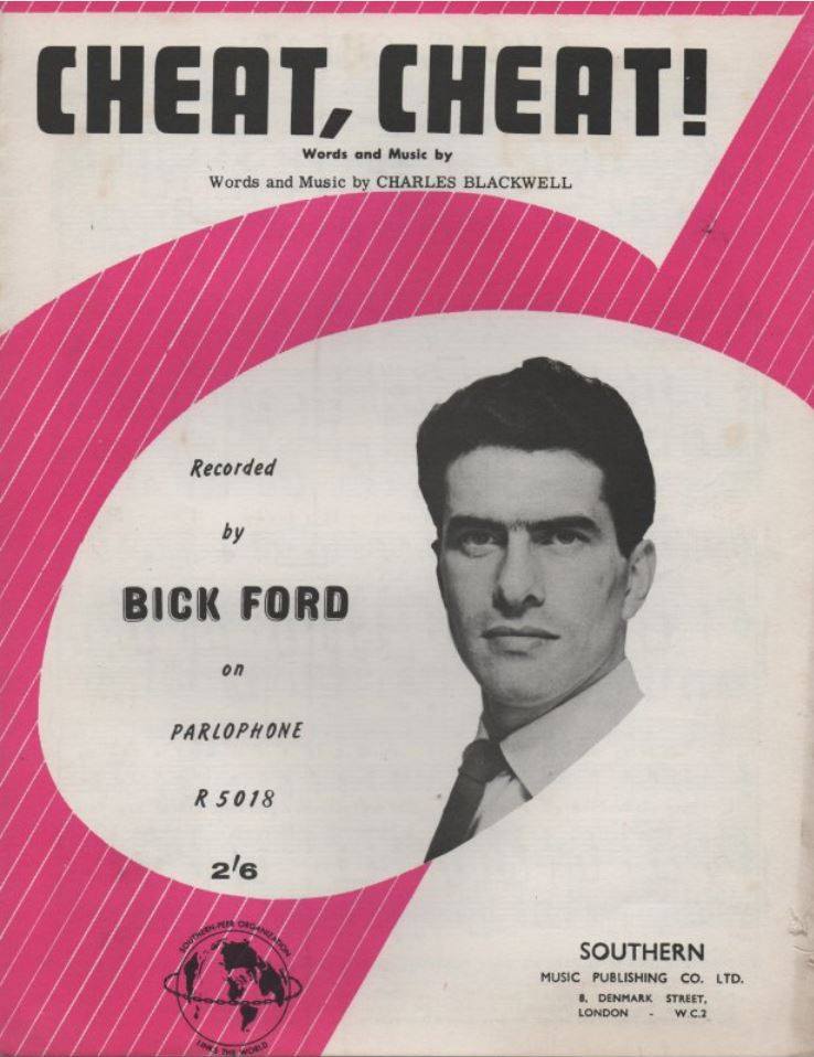 Ford lived in Woking with his wife and child, when as a Daily Mail reporter, he put himself up for ‘grooming’ by Robert Stigwood to become a pop star under the stage name Bick Ford. The Daily Mail covered each step of his progress. This culminated in the release on 11 April ’63 of the, Charles Blackwell penned, 7″ single “Cheat, Cheat” on Parlophone [R.5018].
