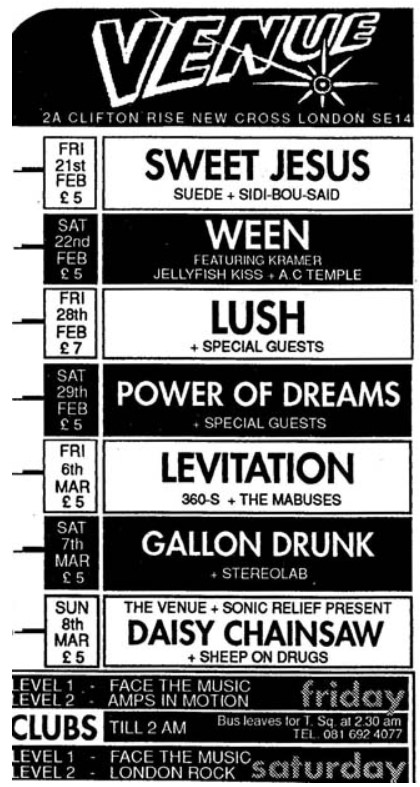 What follows is a list of gigs, with images of tickets, adverts and flyers where possible, either at GU postcode venues or featuring bands, listed in bold, we like to claim are part of the Woking/GU Soundscene in 1992: