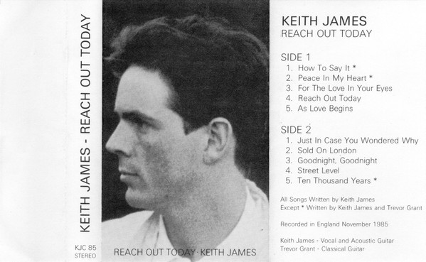 James broke from his normal solo live presentation once again at the Bellerby Theatre on 24 February ’84, when he was joined by a band that included a vocalist called Melanie ? . In early ’86 the cassette LP “Reach Out Today” was released, having been recorded in November ’85. Self-released once again [KJC85] it was a more scaled back affair, with the only other musical contributor being Trevor Grant on classical guitar, who also co-wrote three of the tracks. Later in ’86 James released another cassette LP titled “In Perspective” [KJC86].