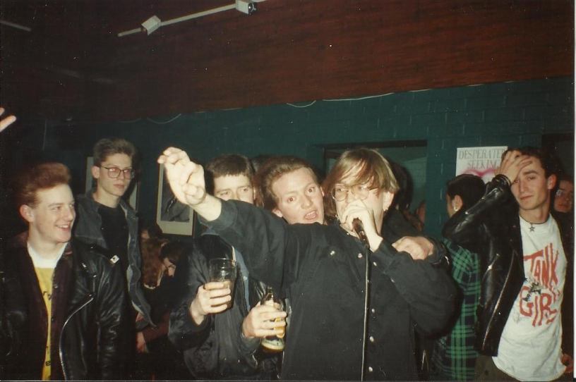 They did 11 gigs, mostly at The George, Ash Vale; but also at the Technical College Farnborough and The Cube, Camberley. To date we have confirmed two appearances: on 6 February ’91 the band were at The George, then on 14 April ’91, EIP performed at the The White Hart, Frimley. Five of the bands 18 songs were recorded, including “Marionette” which appeared on Farnborough Groove Vol.1 in ’91.