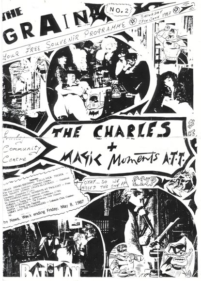 To help promote a joint gig at Frimley Community Centre, members of Magic Moments at Twilight Time and The Charles decided to launch a fanzine called The Grain. The first issue of which was published in June ’87 and could be picked up for free at The Rock Box, Camberley. It ran for 10 issues, ending with “The Last Grain” in February ’88.