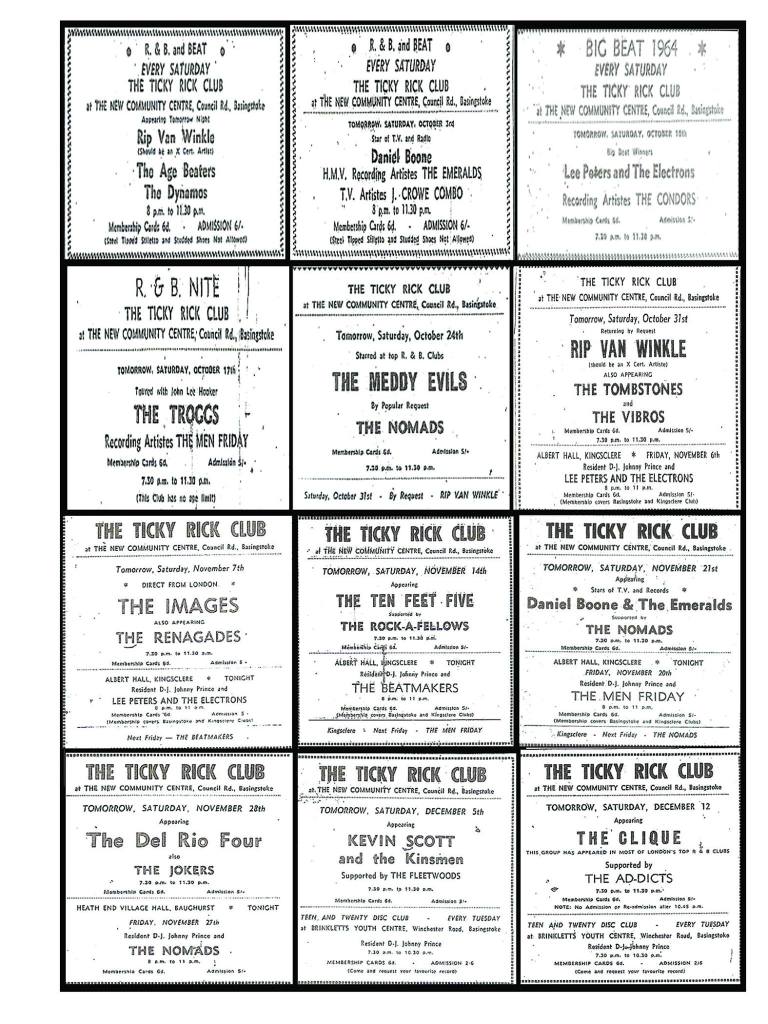 The Vibros didn’t win, but did support nationally recognized acts like The Hollies, The Zombies, and Brian Poole and The Tremeloes. On 31 October ’64 the band, along with The Tombstones, supported Rip van Winkle at the Ricky Tick Club held at the New Community Centre, Basingstoke. They also supported local bands like Pentad, who headline a gig with The Vibros in support, at the Orchid Ballroom, Oxford on 17 July ’65.