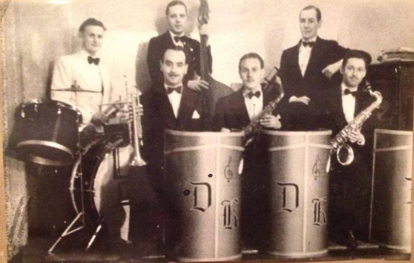 (c’45) Dick Keeble (drums), Jack Tidbury (tenor sax), Denny Beaumont (trumpet / trombone), Leslie Lipscombe (Piano), John Foley (guitar), and Dave Court (bass).