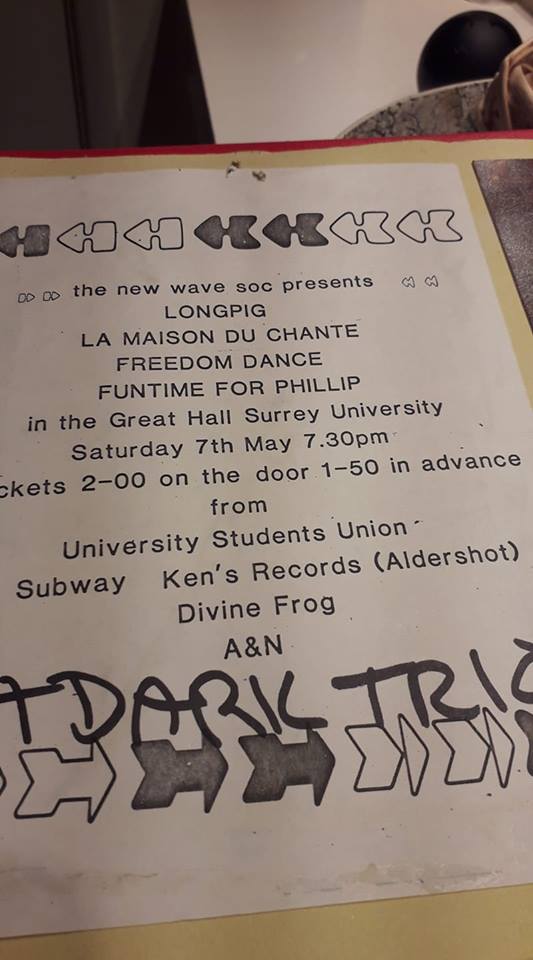 7 May 1984: Funtime for Philip were forth on the bill for this Surrey University New Wave Society event. Picture courtesy of Sharon Pilling.7 May 1984: LongPig, La Maison du Chants, Freedom Dance and Funtime for Philip are at Surrey University. Picture courtesy of Alan and Jackie WallisFuntime for Philip were featured in this issue of The Werewolf fanzine. Picture courtesy of Sharon Pilling.7 May 1983: Funtime for Philip at May Bug Ball, University of Surrey. Picture courtesy of Debra Harris.