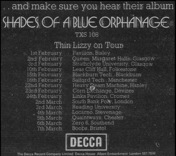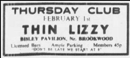On 27 January ’72, Slade performed at the Pavilion, the same day as their recording for the Pete Drummond Show on BBC Radio 1 was broadcast. Later in the year, and about the same time they appeared on German TV show, Disco, Blackfoot Sue probably performed their Top Ten UK Chart hit “Standing in the Road” on 16 November ’72. In February the next year Thin Lizzy began a round of club and university dates with the Bisley Pavilion on 1 February ’73. The next month you could have caught progressive rockers Dragonmilk on 22 March ’73, followed the week after by Hookfoot, with Sam Apple Pie in support, on 29 March ’73. Also in the 70’s: Status Quo, Queen, Christie, Roy Harper, and Emperor Rosco are supposed to have appeared there. The venue also became infamous for its Northern Soul all-nighters.