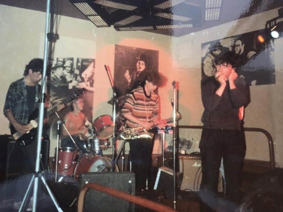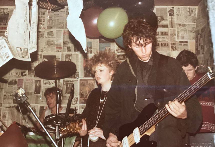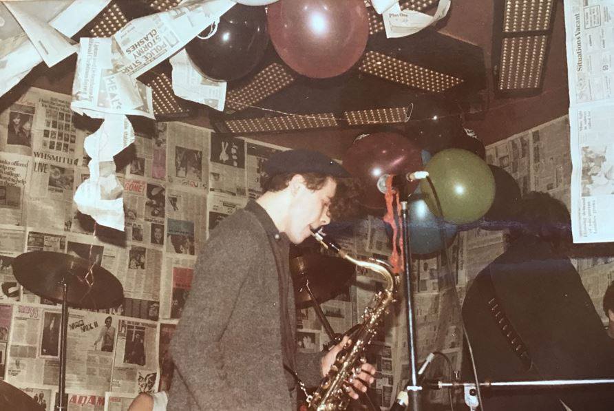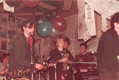 (c’83) Andy Davis (vocals), Philip Joseph (synth), Jane ‘Juggley Jane’ Ballamy (trumpet), David “Digger” Harris (drums), and Andy Robertson (sax).