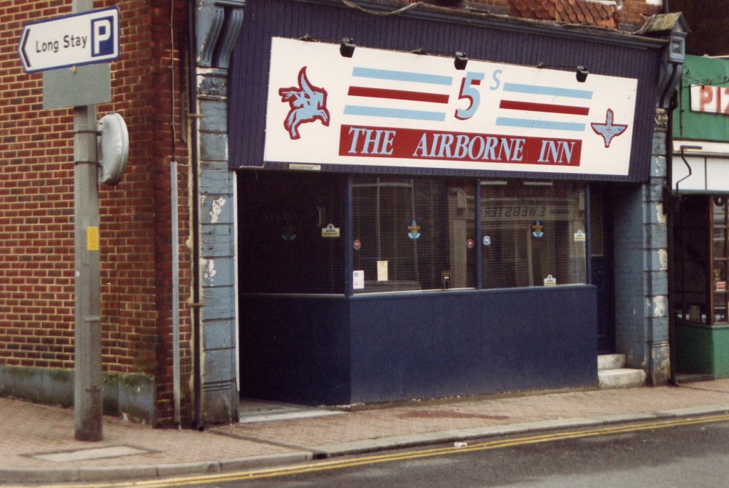 Sat on a corner along Station Road, 5’s Wine Bar was a pretty basic town centre pub – originally opened by Brian ? – that became popular with 9 Parachute Squadron RE. It even changed its name to 5’s The Airborne Inn (also known as Spice Zone, Tudor’s Cafe Bar, 5’s Bar). But, while you supped your beer from a plastic glass and wondered how the front window got smashed this time you could catch many an upcoming local band.
