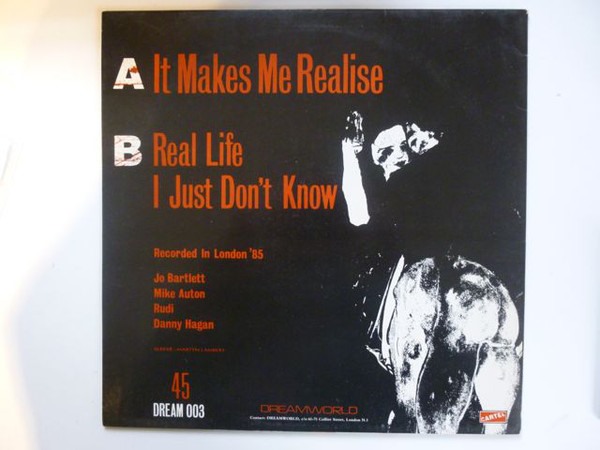 At some point they re-branded as Go! Service and in September ’84 joined Fenton Weills to support Television Personalities as they toured Germany, Lichtenstein, Switzerland, and the Netherlands. This Camberley band were by then signed to the Dreamworld Records label and quickly released the 12″ single “It Makes Me Realise” [DREAM 003] in ’85. This was backed by “Real Life” and “I Just Don’t Know”. That same year they once again supported label mates The Television Personalities around Europe. In November ’85 the band supported The Housemartins.