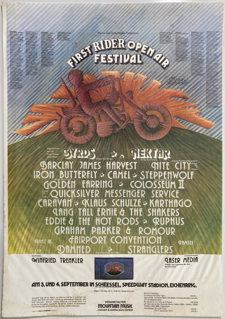 3 & 4 September 1977: Camel, Stranglers, and Graham Parker all on the bill for Rider Open Air Festival in Scheeßel, Germany. Source: www.omegaauctions.co.uk