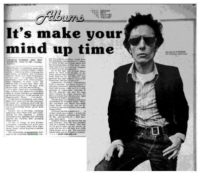 Through Brown, Parker met ex-Chilli Willi and the Red Hot Peppers member Paul “Bassman” Riley and secured a solo gig at Southern Comfort, Finsbury Park. Riley introduced Parker to Dave Robinson, the ex-manager of Brinsley Schwarz who, in a studio above the Hope & Anchor, Islington; began to record Parker.
