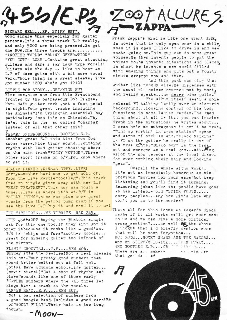 In late ’74 a young man living with his parents in Deepcut, who worked as a petrol pump attendant, placed an ad in Melody Maker seeking like-minded backing musicians. Guitarist Noel Brown answered and in Spring ’75 Parker began driving up to London on a regular basis.