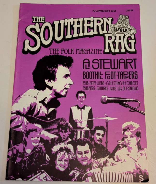 Anderson remained the editor for the magazine’s entire forty-year lifespan. You could have also caught Anderson, who also ran a folk club at The Star Inn, Guildford. and his wife Maggie as Hot Vultures. The Folklore Library and Archive in Crediton, Devon holds almost a complete run of The Southern Rag, with only a couple of issues missing, plus many issues of Folk Roots – Expect Our Soundscene to visit there in the future.