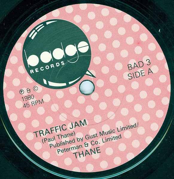 We know the band appeared at the Cambridge Hotel, Camberley and the 101 Club, Clapham in ’80. The latter secured them a track on 101 Records ‘Beyond the Groove’ compilation LP along with The Fix, Modern Man, and the Electric Eels, amongst others. This spot was filled by “Traffic Jam”, the title track of Thane’s debut 7″ single, that was also released in ’80. Produced by Dave Moore, “Traffic Jam” [BAD 03] was on Badge Records and backed by “Frankie Boy”. It was also released in France on the Arabella label [102273] that same year. The following year, still on Badge Records and with Dave Moore producing, “Romance Down the Drain” [BAD 8] hit the streets, with “Transparent Love” on the flipside. To the best of our knowledge the band dissolved in late ’81.