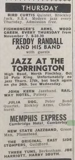 I was listening to R3 Jazz programme just now (Sunday at 1600) and suddenly remembered the High Curley Stompers at the Cambridge in the 60s. Kay Nightingale, who lived at the Avenue Inn and I (Lynn Taylor) used to go sometimes…..